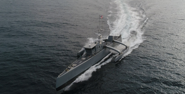 Medium Displacement Unmanned Surface Vehicles (MDUSVs) navigate the